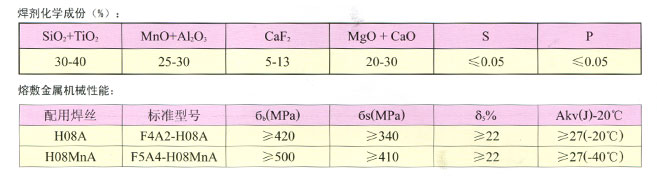 該焊劑可用于單絲、雙絲、多絲焊,適用于低碳鋼及低合金鋼的埋弧焊接,也可用于薄板的快速單道焊及雙面焊接,特別適用于雙面單道焊,常用于液化石油氣貯罐,氣瓶及(A、B、X42、X46等)管線鋼的埋弧焊接及型鋼鋼結(jié)構(gòu)焊接。