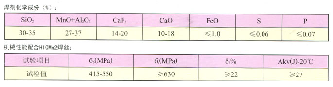 配合焊絲(如H08MnA,H08Mn2,H08Mn2Mo)可焊接低合金鋼(如16Mn,15MnV,15MnVN等)結(jié)構(gòu),廣泛用于船舶、鍋爐、高壓容器等。細粒度焊劑,可用于細絲埋弧焊,焊接薄板結(jié)構(gòu)。
