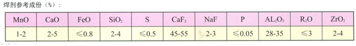 DC·HJl72是熔煉型無(wú)錳低硅高氟焊劑,為白色至淺灰色半透明玉石狀顆粒,粒度為10-60目(2.0-0.3mm)。采用直流電源,焊絲接正極,焊接工藝性能良好,焊接含鈮或鈦的鎳鉻不銹鋼時(shí),無(wú)粘渣現(xiàn)象。其熔渣氧化性很弱,合金元素不易燒損。焊縫含氧量低,故具有較高塑性和韌性。